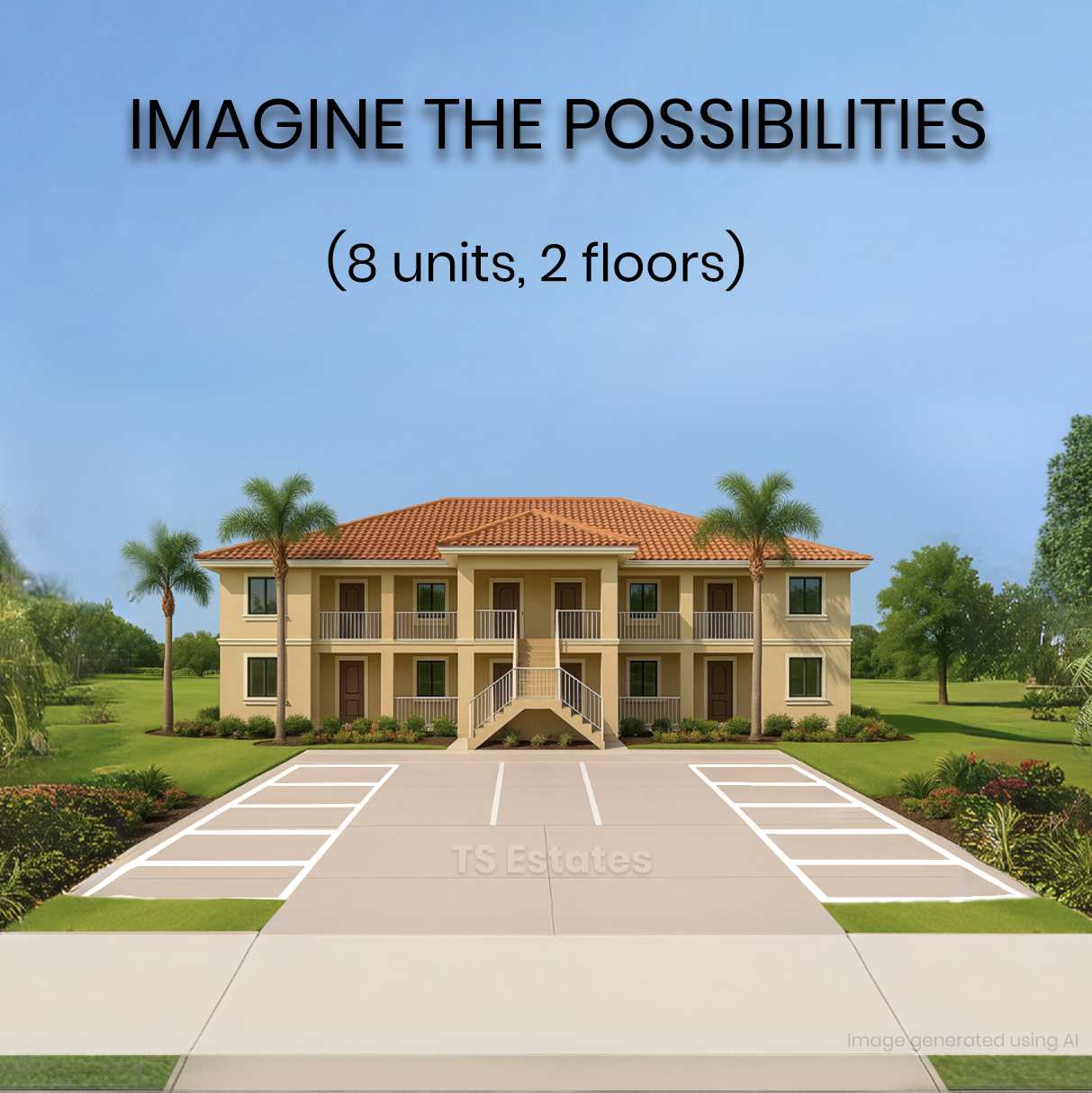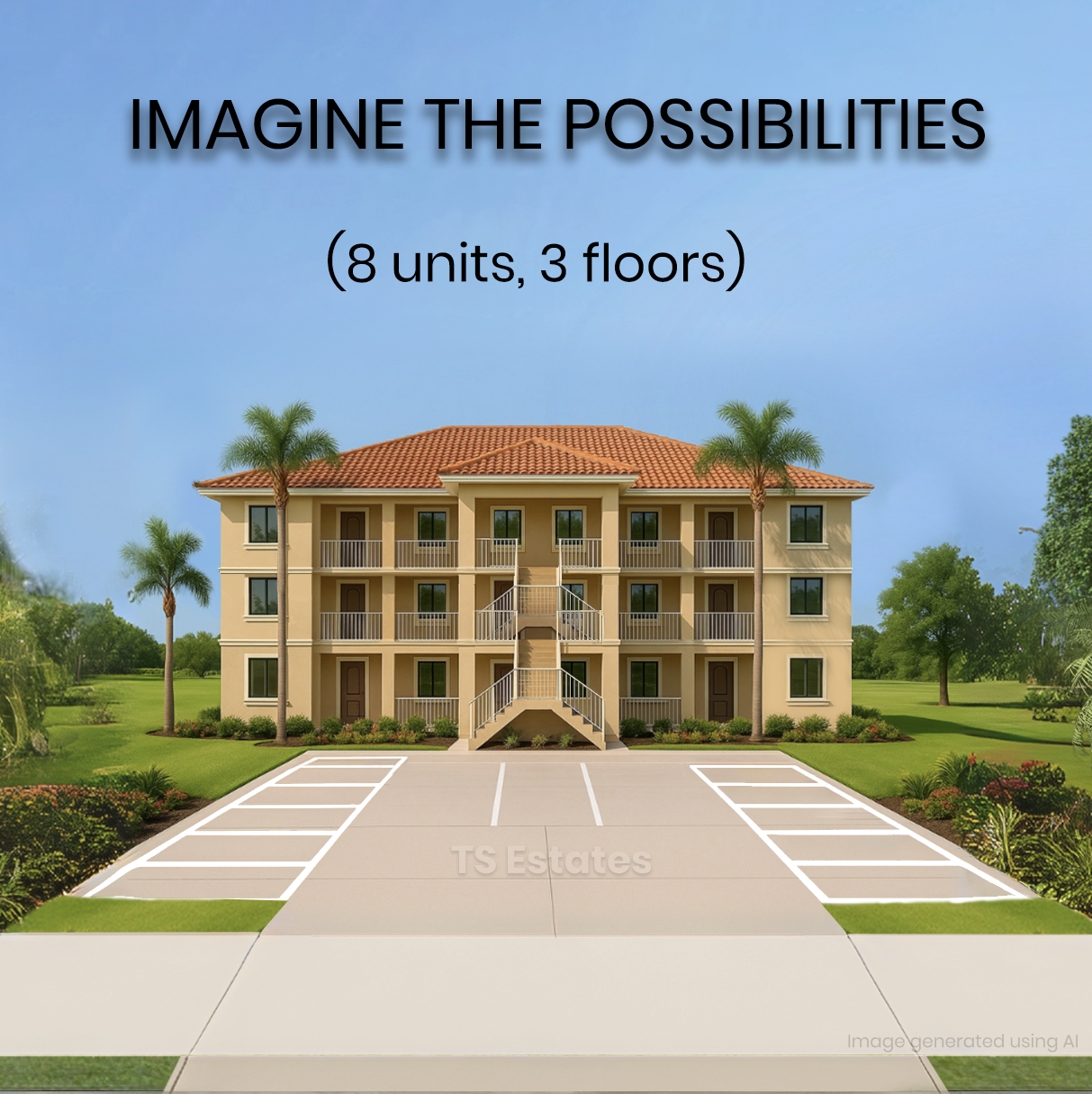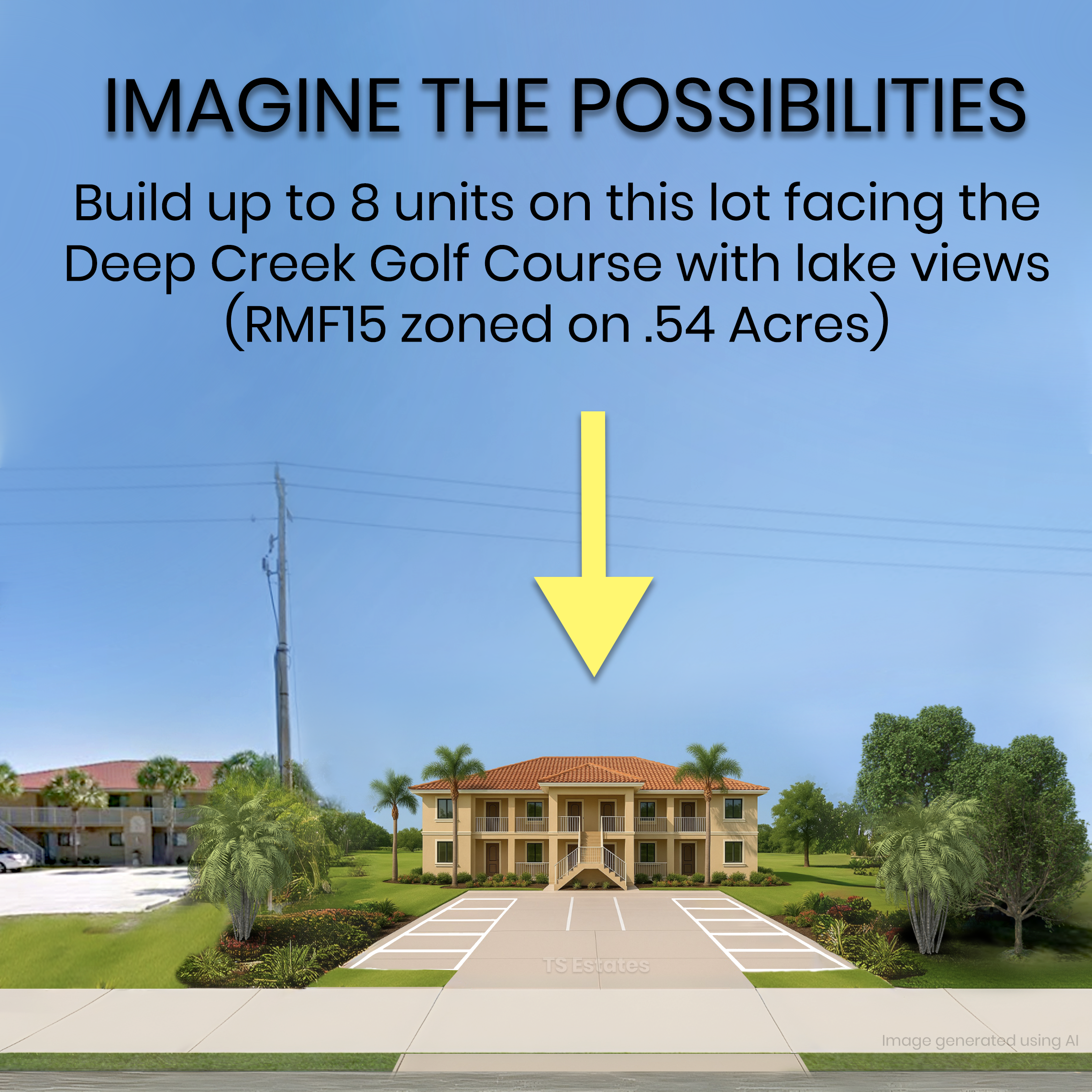 Welcome to 1390 Rio de Janeiro Avenue – a rare opportunity in Deep Creek, Punta Gorda to develop a 8-plex multi-family residence. Nestled within one of Florida’s most scenic communities, this 0.54-acre lot is zoned RMF15, allowing up to 15 units per acre, and backs directly onto the golf course with lake views.
